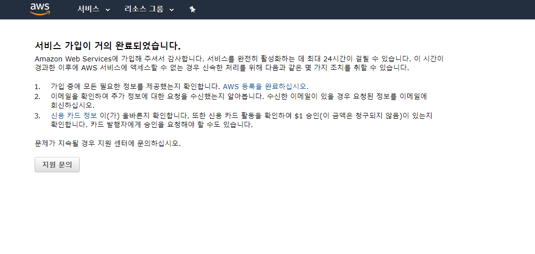 무료 계정으로 생성할 것입니다. 이 free tier는 1년간만 무료이고 기간이 지나면 결재가 됩니다.